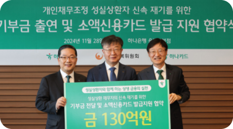 채무조정 이행자와 금융취약계층의 재무안정을 위해 카드발급·법률비용 등을 지원합니다.